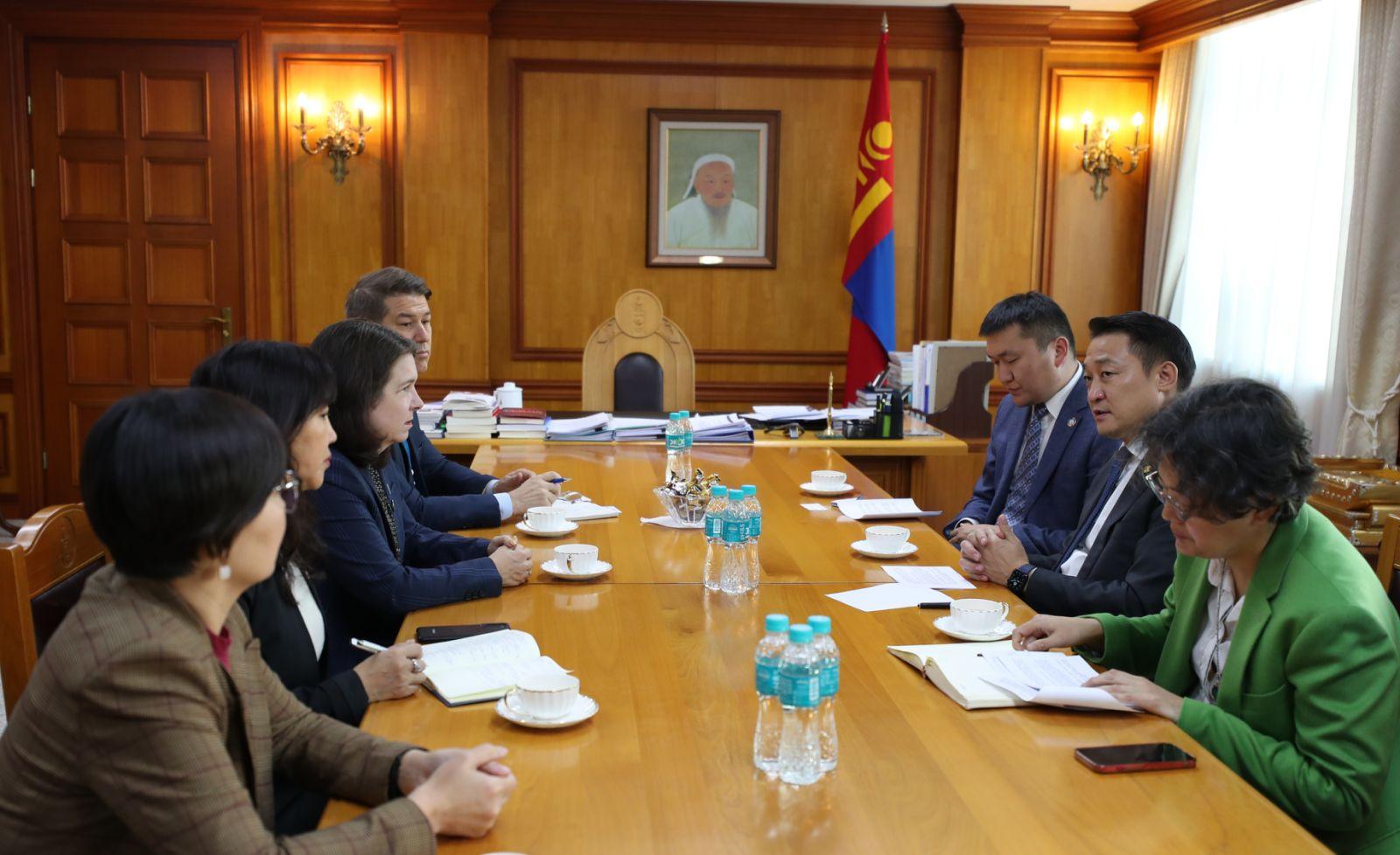 Монгол Улсын сайд, Засгийн газрын Хэрэг эрхлэх газрын дарга Д.Амарбаясгалан Монгол Улс дахь НҮБ-ын Хөгжлийн хөтөлбөрийн суурин төлөөлөгч Илэйн Конкиевич болон Бангкок дахь бүсийн төвийн “Бизнес ба хүний эрх” хөтөлбөрийн зохицуулагч Шон Лийс нартай уулзлаа.