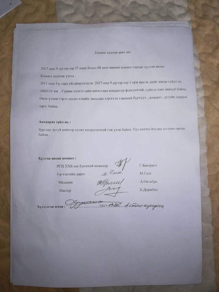 Хэд хэдэн баримт бичихэд, тэрбээр техникийн зах дээр 10 гаран сая төгрөгөөр зарагддаг Бонго маркийн машиныг 50 орчим сая (авсан Бонго нь 466 мянган км явсан, 6 дугуй нь элэгдсэн, техникийн хувьд доголдолтой байсныг нотлох техник хүлээж авах актыг хавсаргав),