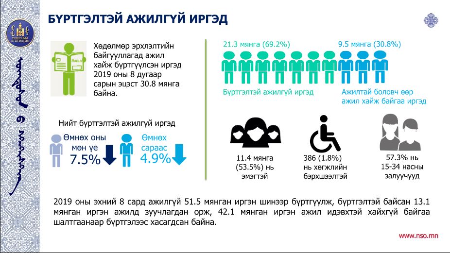 Үндэсний статистикийн хорооноос 2019 оны эхний найман сарын байдлаарх Монгол Улсын нийгэм, эдийн засгийн нөхцөл байдлыг өнөөдөр танилцууллаа.