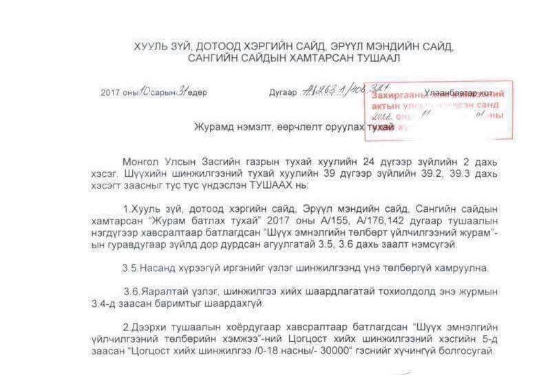 Өнгөрөгч сарын 18-ны өдрийн УИХ-ын чуулганы нэгдсэн хуралдааны үеэр Ерөнхий сайд У.Хүрэлсүх ХЗДХ, Эрүүл мэнд, Сангийн сайд нарын хамтарсан тушаалыг цуцлахаа мэдэгдсэн билээ.