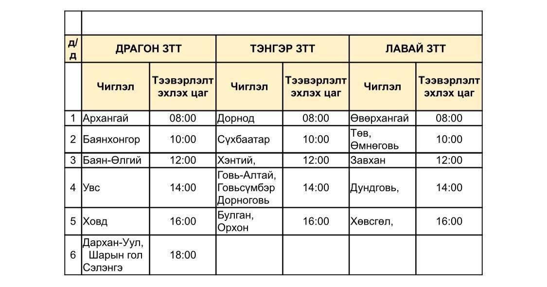 Тээврийн хэрэгсэл 40 зорчигчтой болсон тохиолдолд дээрх аймгууд руу явахаар зохицуулсан байна. Шаардлагатай мэдээллийг 1900-1234 дугаарын утаснаас лавлаж болно.