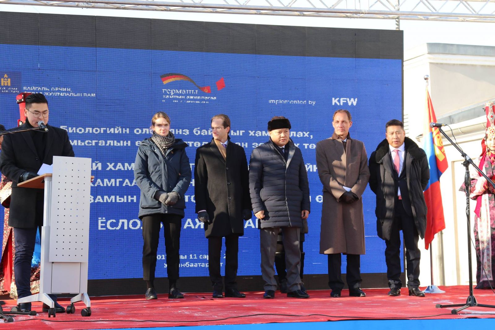 БОАЖ-ын сайд Н.Цэрэнбат ёслолын ажиллагааны үеэр “Энэ жил БОАЖЯ байгуулагдсаны 30 жил, Монгол-Германы хөгжлийн хамтын ажиллагааны 25 жилийн ой тохиож байна. Байгаль орчны салбарт сүүлийн 20 гаруй жил тасралтгүй хамтран, дэмжин ажиллаж, техникийн болон санхүүгийн хамтын ажиллагааны олон төсөл хөтөлбөрүүд хэрэгжүүлж байгаад БОАЖ-ын сайд, салбарын нийт хамт олны нэрийн өмнөөс талархал илэрхийлье. Энэхүү хамтын ажиллагаа нь Монгол Улсын байгаль орчны салбарт үнэлж барашгүй үр дүнгээ өгсөөр байна. Биологийн олон янз байдлыг хамгаалах, уур амьсгалын өөрчлөлтөд дасан зохицох төсөл нь хоёр орны байгаль орчны салбар дахь хамтын ажиллагааны томоохон жишээ бөгөөд Монгол орны Тусгай хамгаалалттай газар нутгуудад хөрөнгө санхүүгийн бодитой тусламж үзүүлж байгаагаараа онцлог юм. Төслийн хүрээнд Тусгай хамгаалалттай газар нутгийн хамгаалалтын захиргаадын материаллаг баазыг бэхжүүлэх, хамгаалалттай газар нутгийн дэд бүтцийг сайжруулах чиглэлээр олон талт үйл ажиллагааг төлөвлөн, амжилттай хэрэгжүүлж байгаад баяртай байна” гэлээ.