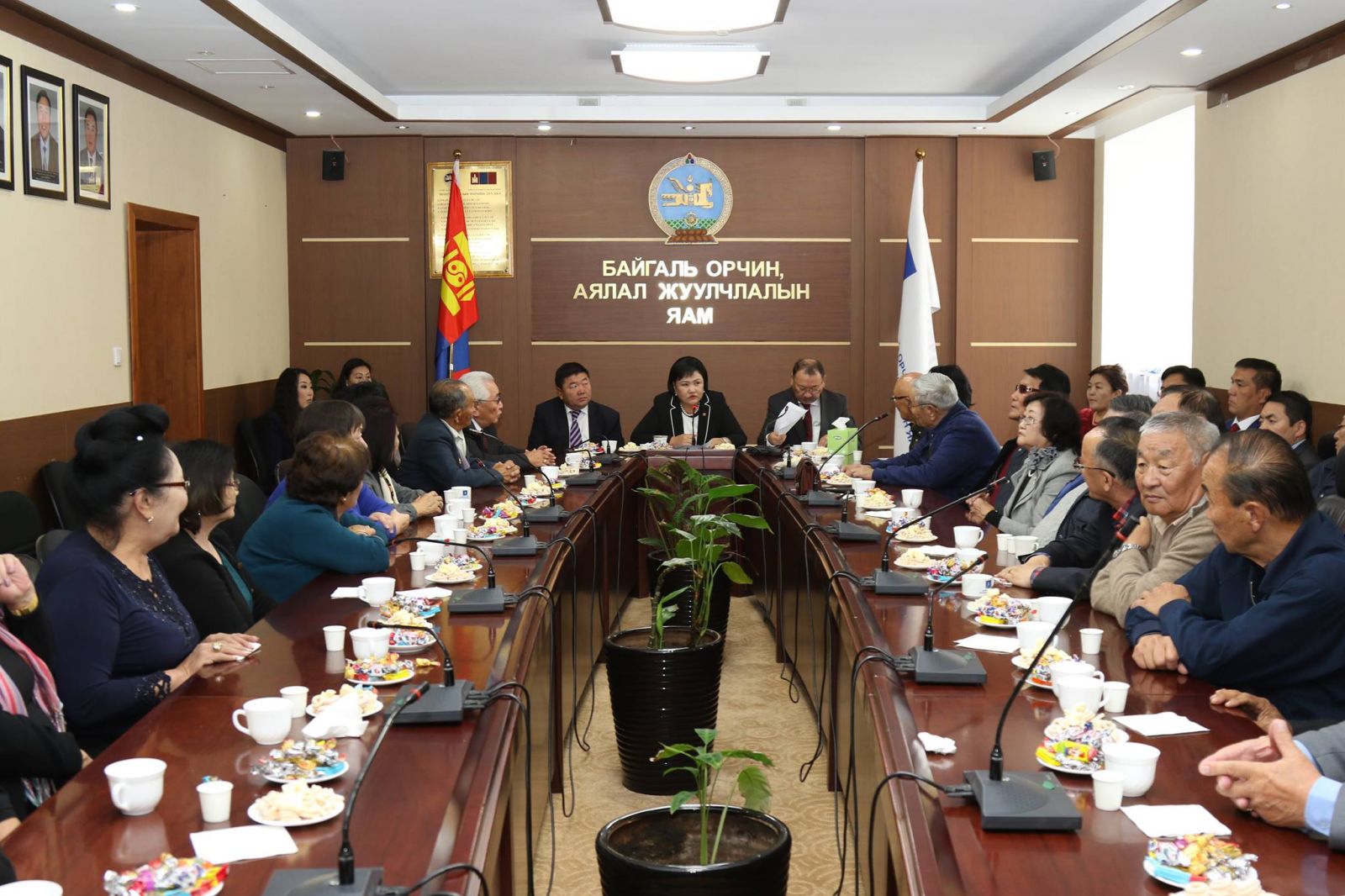 БОАЖ-ын сайдын үүрэг гүйцэтгэгч Д.Оюунхорол ахмадууддаа хандан хэлсэн үгэндээ “Ахмадуудынхаа үгийн сонсно гэдэг ямарваа нэгэн алдаа гаргахаас урьдчилан сэргийлнэ гэсэн үг. Энэ ч утгаараа манай яамныхан ахмадуудтайгаа байнга холбоотой байж, хамтарч ажилласаар ирсэн. Энэ хүрээнд яамны хөдөлмөрийн дотоод журамд заасны дагуу нас барсан 3 ахмадын ар гэрт тус бүр таван зуун мянган төгрөгийн буцалтгүй тусламжийг олголоо. Монгол Улсын Засгийн газрын 2016-2020 оны үйл ажиллагааны хөтөлбөрт тусгагдсан “ахмадын зөвлөх үйлчилгээ”-г бий болгох ажлын хүрээнд “Байгаль орчин, аялал жуулчлалын яамны ахмадуудтай хамтран ажиллах, тэдэнд дэмжлэг үзүүлэх тухай” 6 бүлэг 19 заалттай гэрээ байгуулан ажиллаж байна. Энэхүү гэрээний дагуу тус яамны зарим ахмад ажилтанаар зөвлөх үйлчилгээний ажил хийлгэж байна. Тухайлбал, Загийг түлшинд хэрэглэхээс хамгаалж, түлшийг орлуулах, цөлжилтөөс сэргийлэх зорилгоор Баянхонгор аймгийн Богд суманд 1 га газарт түргэн ургадаг мод тарих туршилтын ажил, Монгол улсын хил дамнасан ТХГН-ийн талаар судалгаа, Зарим газар нутгийг Улсын тусгай хамгаалалтанд авах үндэслэл боловсруулах ажил, Дүйцүүлэн хамгаалалын хууль эрх зүйн орчинг боловсронгуй болгох асуудал, “Монгол орны ойн нэвтэрхий толь” бүтээх ажил, “UNREDD төслийн оролцогч талууд” төслийн гүйцэтгэгч, Ногоон хэрэм төслөөр хийсэн ойжуулалтын ажлыг хүлээн авах ажил оролцуулсан зэрэг ажлуудыг НҮБ-ын Байгаль орчны хөтөлбөрийн төслийн санхүүжилтээр хийж гүйцэтгүүлж байна. Мөн Азийн хөгжлийн банк, японы ядуурлыг бууруулах сан, олон улсын намгийн байгууллагаас хэрэгжүүлсэн “Монгол орны хүлэр намгийн стратегийн төлөвлөгөө” сэдэвт төслийн зөвлөх болон яамны 30 жилийн номыг эмхэтгэн бичих ажлуудыг яамны ахмад 10 гаруй ажилтнуудыг хамруулан зөвлөх үйлчилгээгээр хийлгэж байна. Цаашид ч ахмад ажилтны арвин туршлага, дадал, ур чадварыг ашиглан байгаль орчныг хамгаалах, нөхөн сэргээх чиглэлээр олон ажлуудыг гэрээний үндсэн дээр хийлгэх зорилт тавьж ажиллана. Та бүхэндээ эрүүл энх, сайн сайхан бүхнийг хүсэн ерөөе” хэмээсэн юм.
