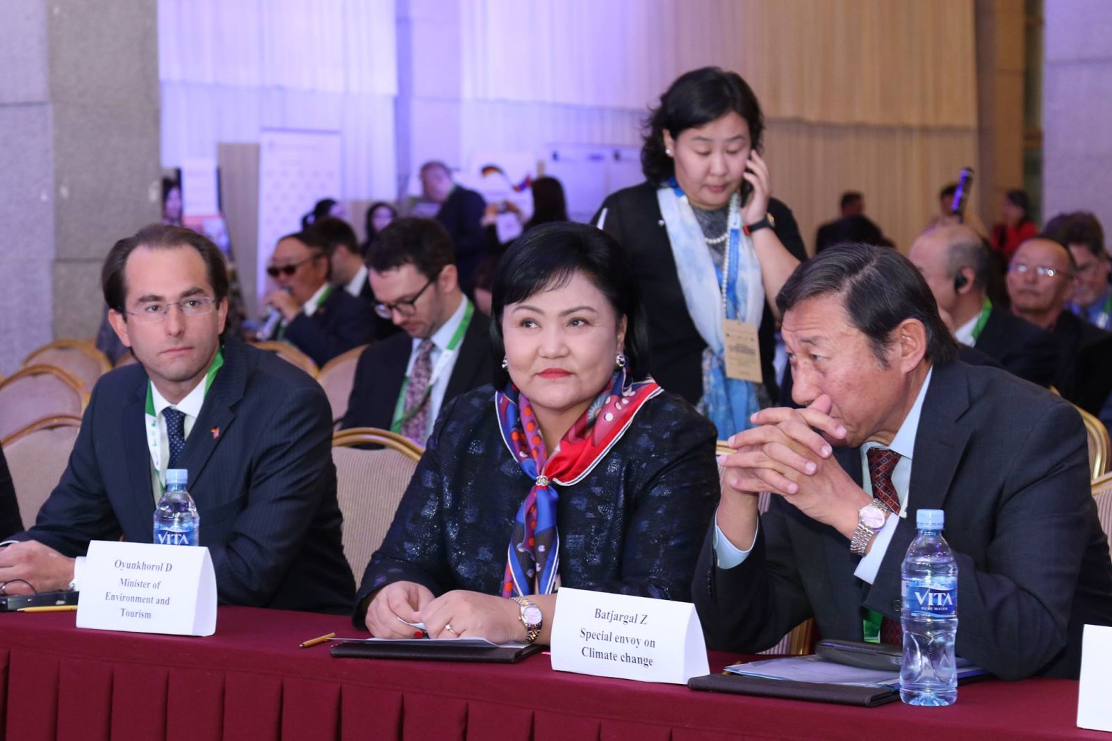 Монгол Улс далай тэнгисээс алслагдмал, хуурай ширүүн уур амьсгалтай, газарзүйн өндөрлөг байршилтай, байгаль экологийн энэ байдлыг дагасан бэлчээрийн мал аж ахуй зонхилон эрхэлдэг зэрэг онцлогоос хамааран даян дэлхийн уур амьсгалын өөрчлөлтөд нэн эмзэг орны тоонд багтдаг. Зөвхөн өнөө жилийн байдлыг аваад үзэхэд хур бороо оройтож, ихэнхи нутгаар хуурайшилт, гантай байсны улмаас ойн түймэр их гарч, хортон шавжийн тархалт их, газар тариалангийн бүс нутгаар ургац муутай байлаа. Нөгөөтэйгүүр, зарим нутгаар ширүүн бороо их орж, зам гүүр эвдэж эдийн засгийн багагүй хохирол учрууллаа. Хэдийгээр даян дэлхийн уур амьсгалын өөрчлөлтөд Монгол улсаас оруулж буй хувь нэмэр өчүүхэн бага ч энэ мэтээр уур амьсгалын өөрчлөлтөд өртөгдөх нь манай улсын байгаль экологи, нийгэм, эдийн засгийн амьдралд хүндээр тусч байгаа билээ. Иймд үндэсний хэмжээнд хүлэмжийн хийг бууруулах, нүүрсхүчлийг шингээх чадавхаа сайжруулах зэргээр дэлхий дахины зорилгод Монгол улсын хувь нэмрийг оруулах нь бидний хувьд чухал зорилт болоод байна” гэсэн юм. Мөн тэрбээр Монгол Улсын Засгийн газар “Уур амьсгалын өөрчлөлтийн үндэсний хөтөлбөр”, “Ногоон хөгжлийн бодлого”, “Тогтвортой хөгжлийн үзэл баримтлал” зэрэг үндэсний хөгжлийн тулгуур баримт бичгүүдэд тусган, тэдгээрийг хэрэгжүүлэх арга хэмжээ авч байгааг танилцууллаа. Улмаар Монгол Улсын Засгийн газрын уур амьсгалын өөрчлөлтийн эсрэг тавиад буй зорилго, зорилтыг үр дүнд хүргэхийн тулд олон улсын туслалцаа, дэмжлэг маш хэрэгтэй байгааг уламжилсан. Тиймээс энэ удаагийн чуулганд НҮБ-ын Байгаль орчны хөтөлбөр, НҮБ-ын Хөгжлийн хөтөлбөр, Уур амьсгалын ногоон сан, Улс орнуудын хувь нэмрийн түншлэлийн байгууллага, Азийн Хөгжлийн Банк, ХБНГУ, Япон улсын Засгийн газар зэрэг олон талт болон хоёр талын хамтын ажиллагааны байгууллагууд, бусад банк санхүүгийн байгууллагуудын төлөөлөл, дипломат төлөөлөгчийн байгууллагууд оролцож олон улсын шинж чанартай арга хэмжээ болж байгааг БОАЖ-ын сайдын үүрэг гүйцэтгэгчийн зүгээс тодотгосон юм.