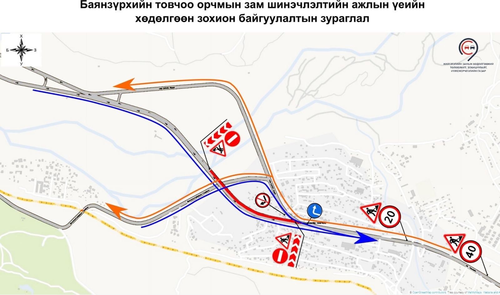 Улаанбаатар-Налайх чиглэлийн авто замын нэг урсгалын хөдөлгөөнийг хаахаар болсон тухай Нийслэлийн авто замын хөгжлийн газраас мэдээллээ. Тодруулбал, Баянзүрхийн товчоо орчмын авто замын өнгө хучилтын ажил хийгдэх тул тавдугаар сарын 18-наас эхлэн дээрх чиглэлийн замын нэг урсгалыг дөрөв хоногийн хугацаанд хаахаар болжээ. Иймд авто замын хөдөлгөөнийг доорх зургийн дагуу үргэлжлүүлэх юм.