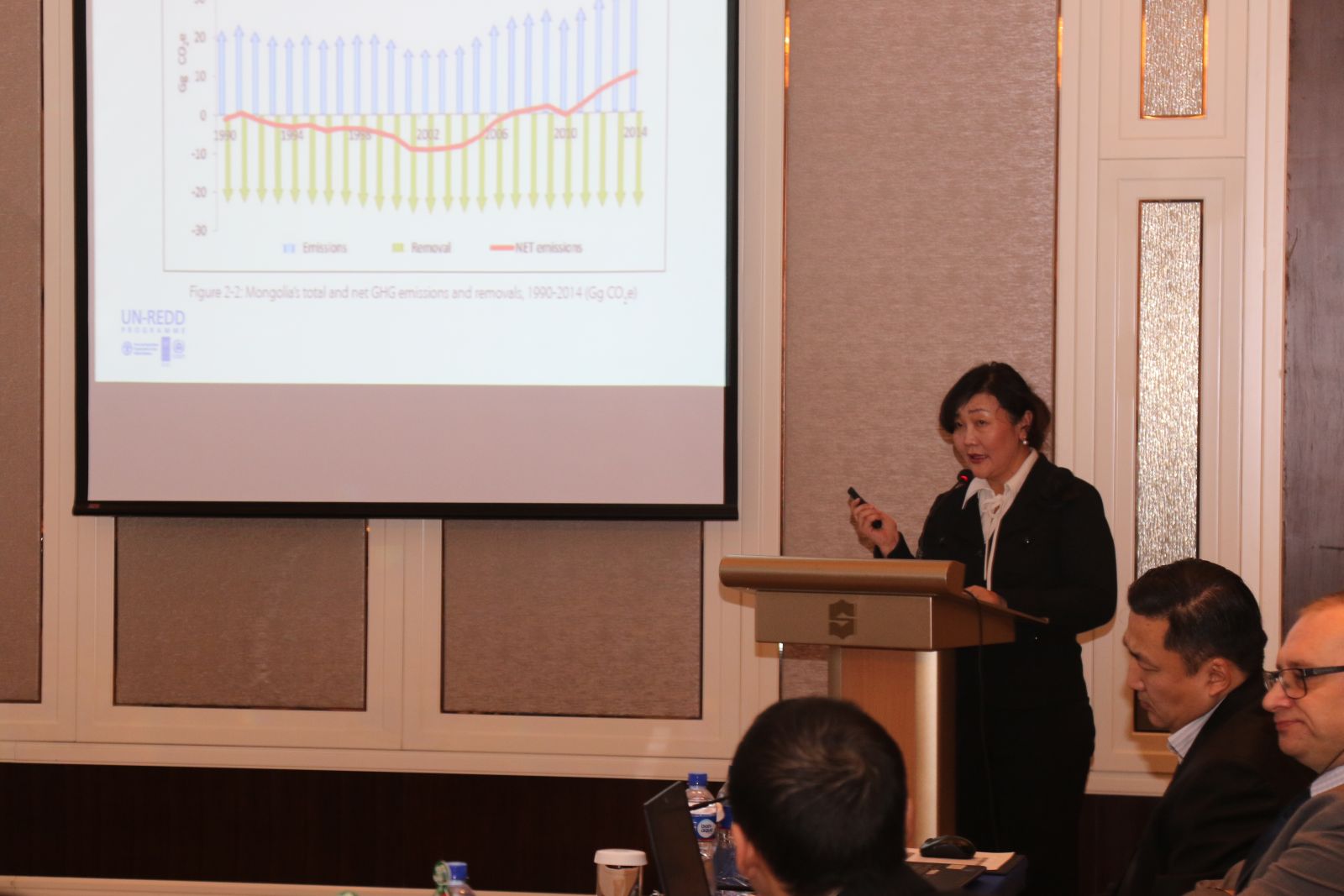 БОАЖ-ын сайд Н.Цэрэнбатын санаачилгаар “Ойн доройтол, хомсдлыг бууруулах замаар уур амьсгалын өөрчлөлтийг сааруулах Үндэсний хөтөлбөрийг боловсруулах шаардлага, хөрөнгө оруулалтын боломжууд” сэдэвт уулзалт боллоо. Уулзалтад БОАЖ-ын сайд Н.Цэрэнбат, Төрийн нарийн бичгийн дарга Ц.Цэнгэл, Ойн бодлого зохицуулалтын газрын дарга М.Тунгалаг, Цэвэр технологи, хөрөнгө оруулалтын хэлтсийн дарга Ц.Уранчимэг, УИХ-ын гишүүн Д.Тэрбишдагва, Б.Баттөмөр, Г.Тэмүүлэн, Сангийн дэд сайд Х.Булгантуяа, Ерөнхийлөгчийн зөвлөх Г.Уянга болон Д.Пүрэвдаваа, НҮБ-ын суурин төлөөлөгч Биата Транкман, UN-REDD+ төслийн техникийн ахлах зөвлөх Рэд Диккинсон болон албаны бусад хүн оролцлоо. Энэхүү уулзалт нь Байгаль орчин, аялал жуулчлалын яамыг үүсгэн байгуулсны 30 жилийн ойн хүрээнд REDD+-ийн хөтөлбөрийн талаар талуудад ойлголт өгөх, уг хөтөлбөр Монгол Улсын хөгжлийн зорилтуудад хэрхэн хувь нэмэр оруулах боломжтой, хөтөлбөрийг хэрэгжүүлэх хөрөнгө оруулалтын төлөвлөгөөг боловсруулах болон батлуулах шатуудад дэмжлэг хүлээх, санал зөвлөмж авах үндсэн зорилготой байсан юм.