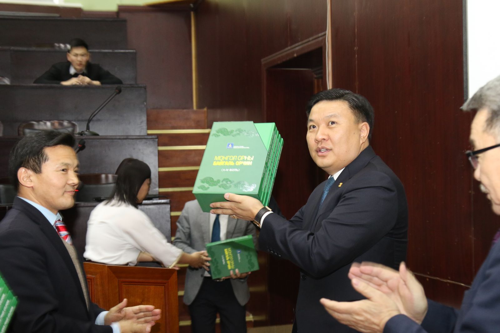 Энэ үеэр ном бүтээхэд идэхвхи чармайлт гарган ажилласан ШУА-ын ерөнхийлөгч Д.Рэгдэл, Б.Аюур, Б.Пүрэвтогтох нарыг БОАЖ-ын сайд Н.Цэрэнбат байгаль орчны тэргүүний ажилтан цол тэмдгээр шагнаж, яамны харьяа байгууллагууд болон ШУА-иуд, зарим их, дээд сургуулиудын төлөөлөлд “Монгол орны байгаль орчин” 5 боть номын дээжээс гардуулсан юм.