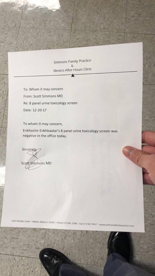 Гэр орон эх нутгаасаа хол байгаа миний хувьд хийж чадах зүйл бол би өөрийн хүсэлтээр дараах шинжилгээг сургууль дээрээ өглөө. Энэ шинжилгээ нь тухайн сонсогчийг олон төрлийн согтууруулах ундаа, мансууруулах бодис хэрэглэсэн эсэхийг илрүүлэх зорилготой хийгддэг. Манай сургуулиас тавьдаг ердийн нэг шаардлага юм. Хэрвээ шинжилгээ муу гарвал сургуулиас хөөдөг. Манай сургууль сурагчиддаа бие бялдарын хувьд эрүүл байх төдийгүй ёс суртахууны өндөр шаардлага тавьдаг. Үүнээс өөр олон үгээр яахав дээ" гэжээ.