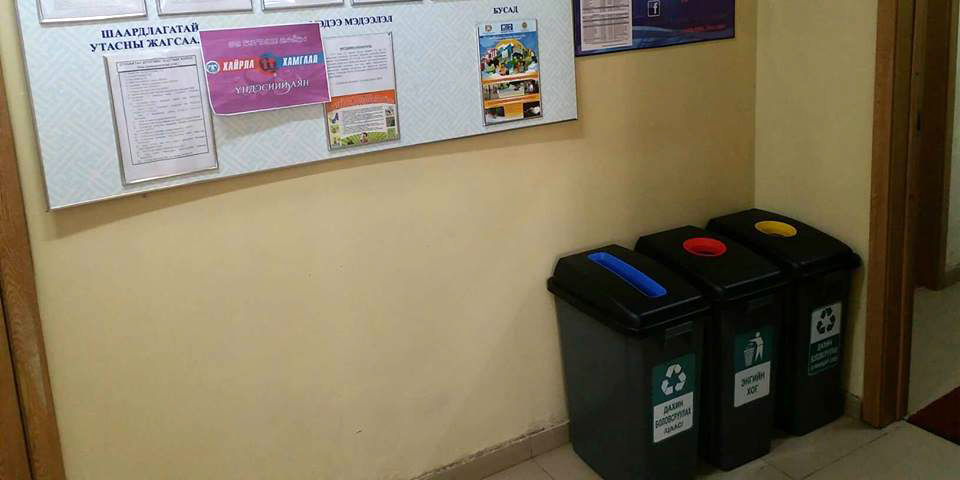 Сүхбаатар дүүргийн Засаг даргын Тамгын газрын хамт олон хог хаягдлыг анхан шатанд нь ангилан ялгах дадлыг хэвшүүлэх, өөрчлөлтийг өөрсдөөсөө эхлүүлэхээр Тамгын газрын байрандаа болон хорооддоо хог ангилан ялгах савыг байрлууллаа. Хог хаягдлыг дахин боловсруулах боломжтой буюу цаас, ундаа, усны хуванцар сав, хөнгөн цагаан лаазны хэмжээ нийт хог хаягдлын 30 орчим хувийг эзэлдэг. Тиймээс манай хамт олон ангилан ялгасан хог хаягдлынхаа хуванцар савыг түүгээр амьдралаа залгуулдаг хүмүүст, цаасаа ариун цэврийн цаасны үйлдвэрт өгөхөөр боллоо. Цэвэрлэгээ үйлчилгээний ажилтнуудын ажил хөнгөрч, тээвэрлэлтийн давтамж ч буурна гэж харж байна.