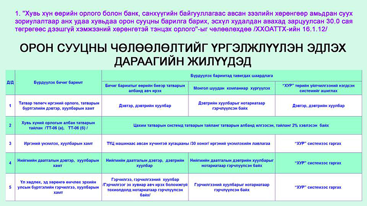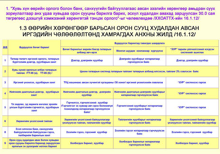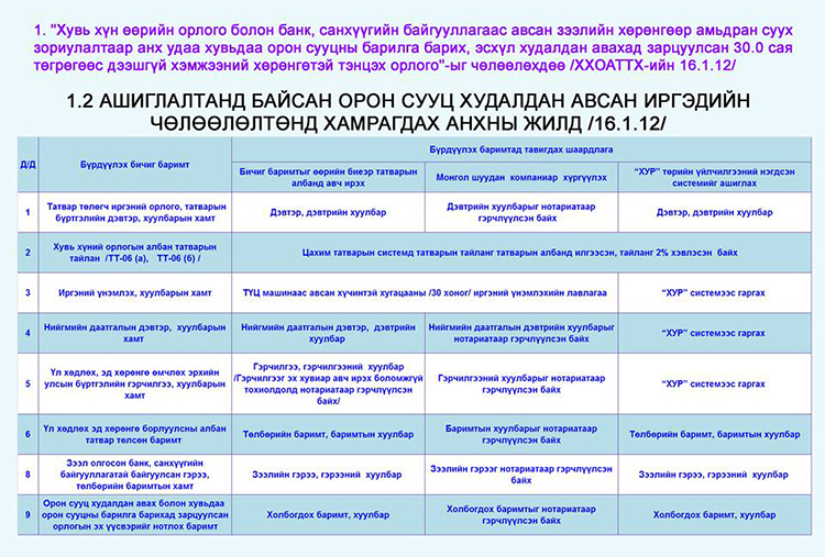 ОРОН СУУЦ ХУДАЛДАН АВСАН БОЛОН БАРЬСАН ИРГЭДИЙН