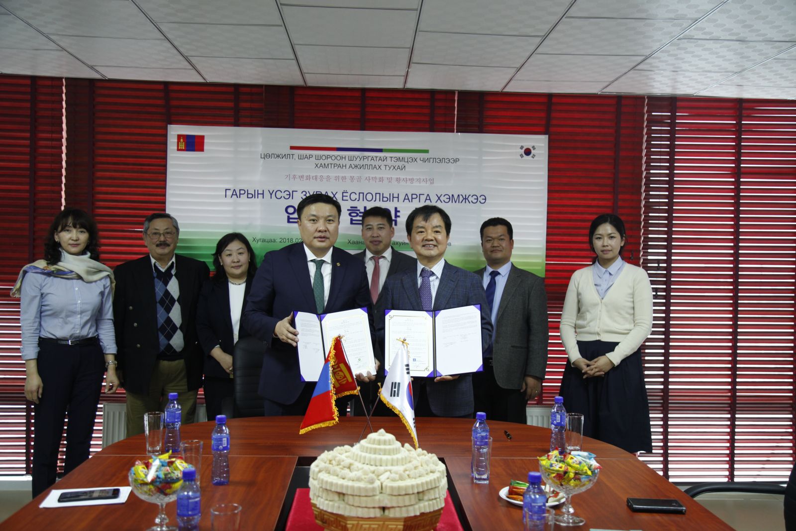 БОАЖ-ын сайд Н.Цэрэнбат, “Ногоон ази сүлжээ” ТББ-ын Монгол дахь төлөөлөгчийн газрын дарга У Ги Чул нар цөлжилт, шар шороон шуургатай тэмцэх чиглэлээр хамтарч ажиллах санамж бичигт гарын үсэг зурлаа. “Ногоон ази сүлжээ” ТББ нь Монголд үйл ажиллагаа явуулж эхлээд 18 жил болж байгаа бөгөөд энэ хугацаанд 6000 гаруй га газарт орон нутгийн иргэдтэй хамтран мод тарьж, иргэдийн амжиргааг дэмжиж ажилласан талаар танилцуулсан юм. Тус байгууллага нь өнгөрсөн жил Засгийн газрын дэмжлэгтэйгээр ойн аж ахуйн сургалтын төв байгуулан орон нутгийн иргэдэд хэрхэн мод, жимс тарьж амжиргаагаа залгуулах талаар сургалт хийдэг болсон байна.